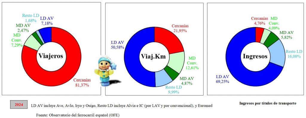 Es decir: el tráfico sobre LAV fue el 59% del total del tráfico de viajeros de Renfe. Sorprendente ¿No?