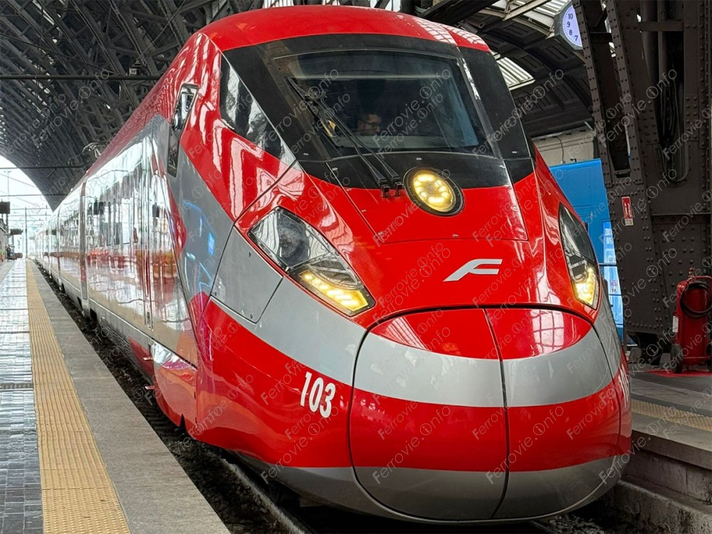 Finalmente, en 02/2026 también empezaron a cambiar el logo frontal: la F de Ferrrovie perdió la bandera italiana, además de otros cambios menores en las letras Frecciarossa de los laterales.