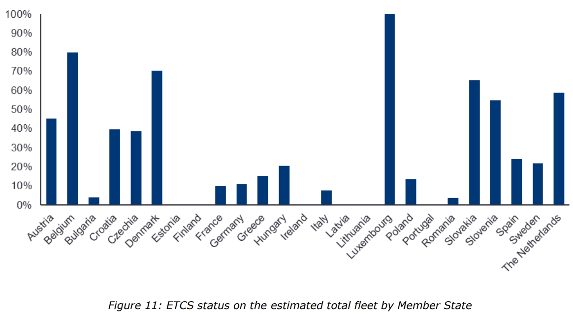 En 07/2023 la tasa de ERTMS en servicio en España era del 62%, muy por encima de Italia (42%), Polonia (34%) o Alemania (13%). Además, si se incluyen los km en construcción, el porcentaje español alcanzará el 90%.