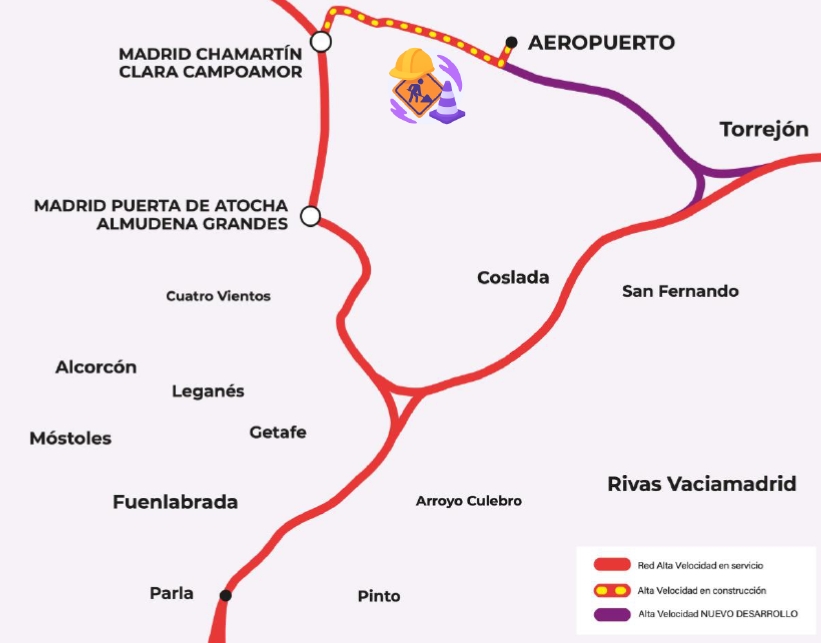 El 17/11/2025 Transportes anunció el plan «España AV 350«, según el cual se hará una nueva línea desde Torrejón hasta la línea de Chamartín hacia la T-4 por la vega del Jarama, entre Torrejón y Coslada (aunque los detalles dependerán del Estudio de Viabilidad). Podría incluir una estación pasante junto al aeropuerto y una conexión directa hacia Segovia AV.