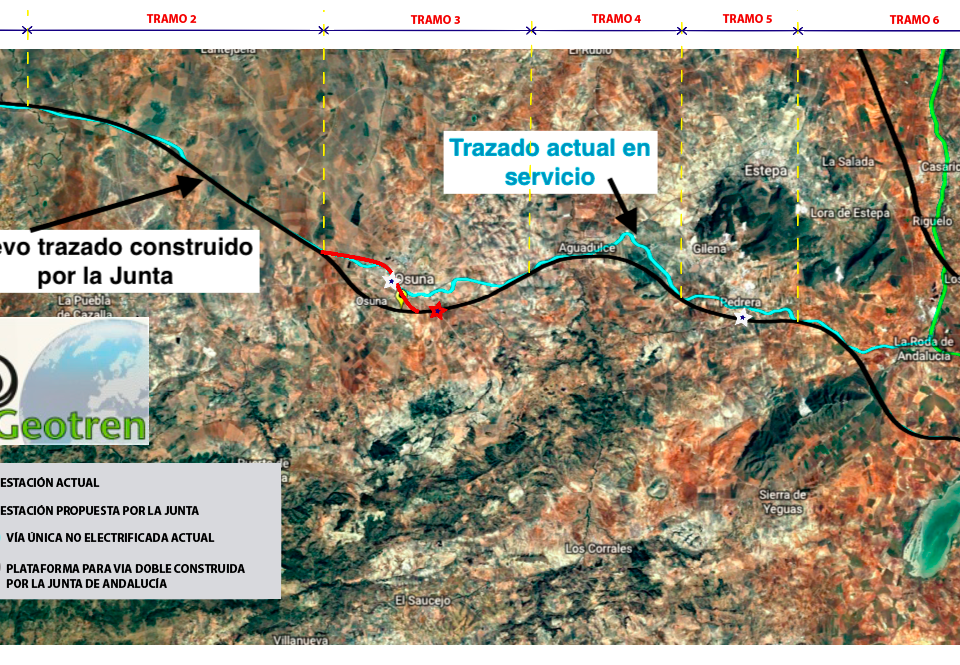 - TRAMO 5: PK 91,3 (T.m. de Gilena) – PK 98,5 (T.m. de Estepa) incluye la estación de Pedrera
