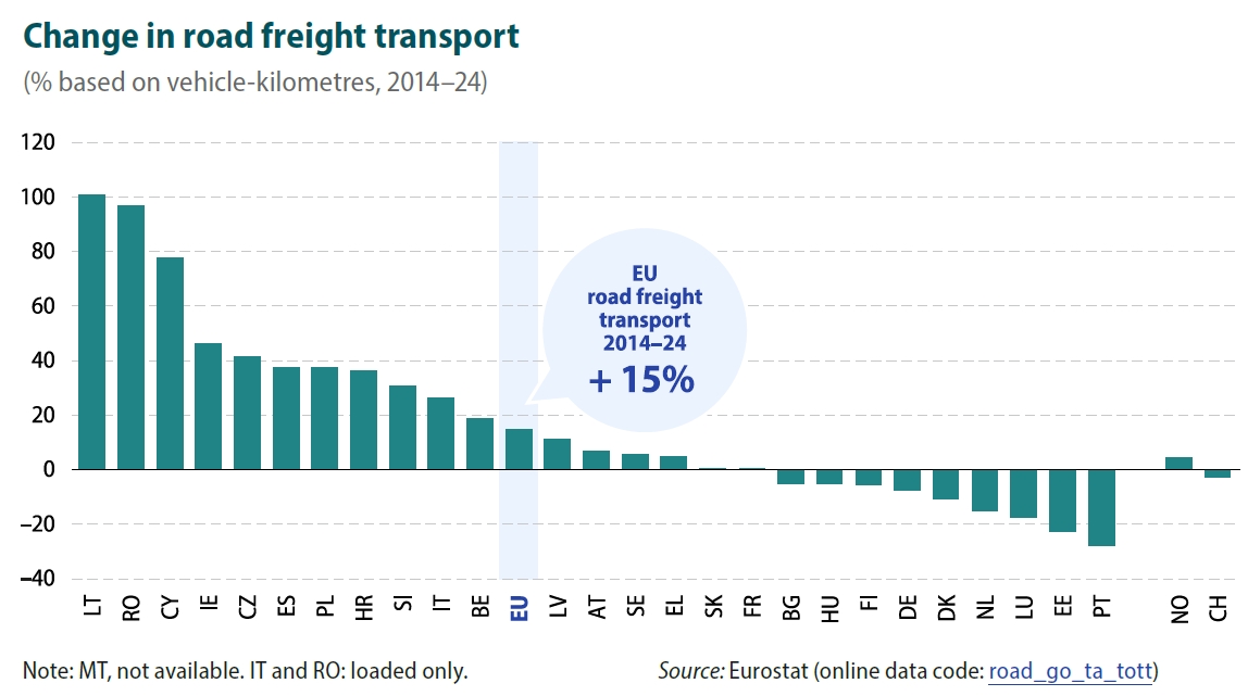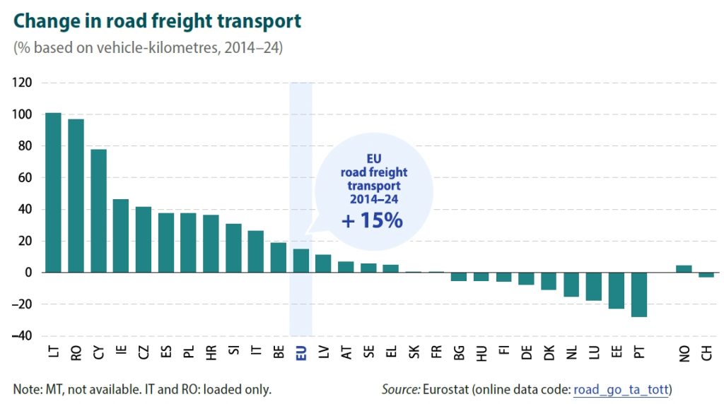 Ahora veamos la evolución comparada en la Unión Europea (2014 / 2024), en el tráfico carretero en los últimos 10 años: