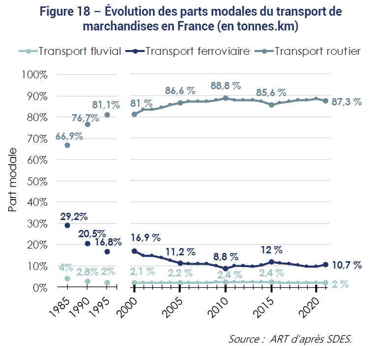 En cambio, me resulta muy preocupante la reducción del reparto en Francia, que (en 1985) estaba en el 30,4% (si solo se compara con la carretera, como el resto de datos de esta entrada) y que -en los últimos 10 años- está por debajo del 11%. De hecho, Francia también tiene un plan para duplicar su cuota modal en el 2030 aunque -en este caso- del 9 (de 2025) al 18%.