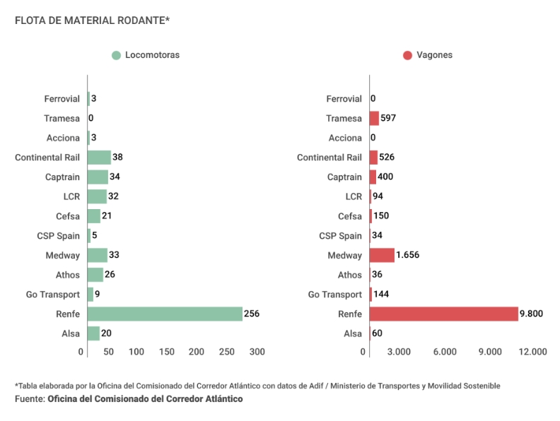 Los operadores alternativos tienen -según mis cuentas- unas 31 de ancho estándar (14 Captrain, 3 CFL, 8 Medway, 1 RailAdventure y 5 DB Cargo Iberia, exTransfesa).